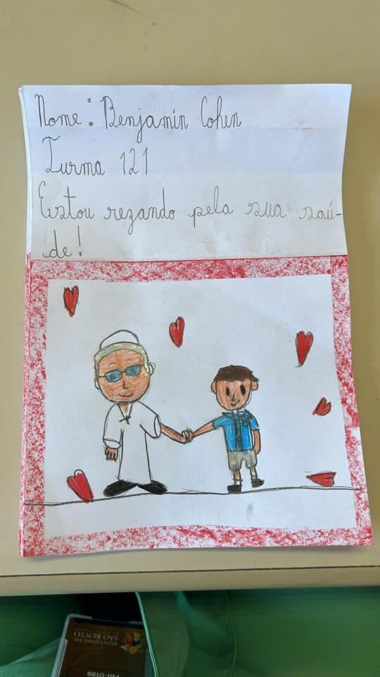 Even from more difficult and needy places come messages full of affection, like that of Gabriel, a 5-year-old boy from Brazil, who writes: ‘Dear Pope Francis, with my friends at school and at home before going to sleep I pray for you and for all the children of the world’.
